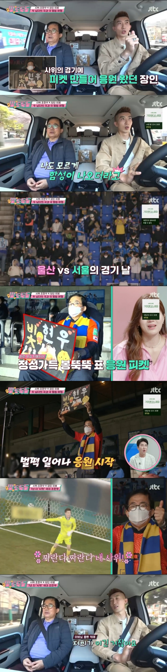 한편 조현우는 "저번에 아버님이 경기장에 피켓 만들고 오셔서 제가 손 흔든 거 보셨어요? 더 힘이 나던데요"라며 얼마 전 홈경기를 응원하러 온 장인어른에 대한 고마움을 표현했다. 스튜디오에 자리한 조현우의 아내 이희영 역시 "직접 아버지가 피켓까지 만드셔서 가셨다"라며 당시 상황을 전했다. 이에 강호동은 "아버지 정말 신바람 나셨겠다"며 거들었다.