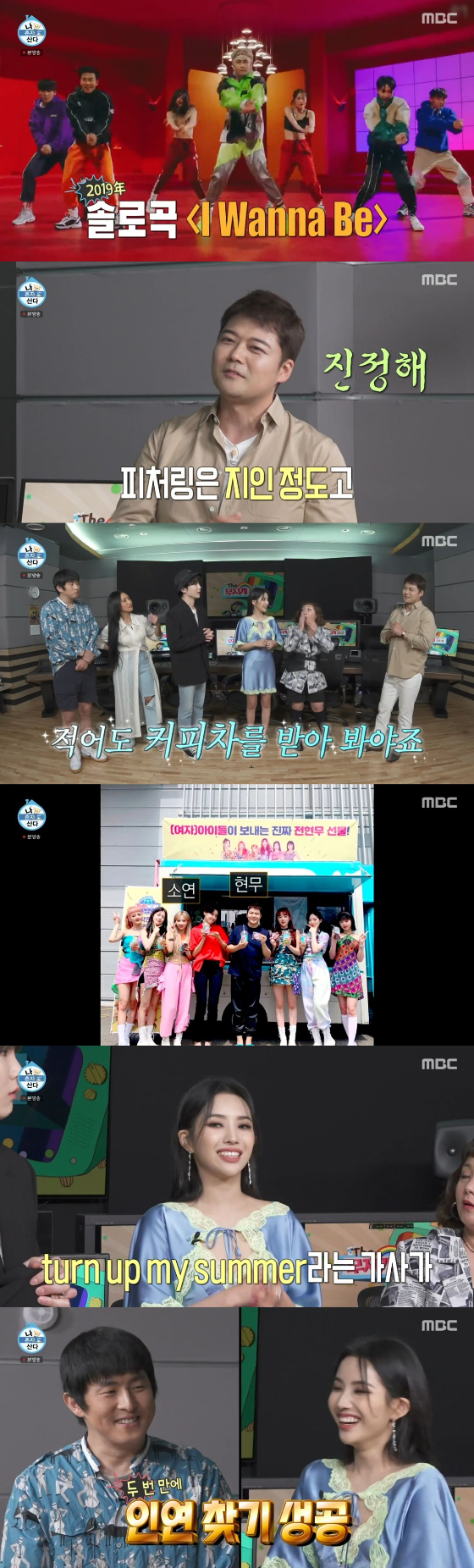 한편 이날 앞서 전소연의 등장에 박나래는 "무지개 회원과 인연이 있냐"고 물었다. 이에 전소연은 "키 선배님 곡에 피처링 한 적이 있다"고 밝혔다. 그러자 전현무는 "근데 사실 그 정도로 인연이 있다고 하면 안 된다"고 받아쳤다. 이어 전현무는 "피처링은 지인 정도고 적어도 커피차를 받아봐야 한다"고 전했다.