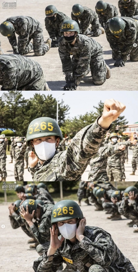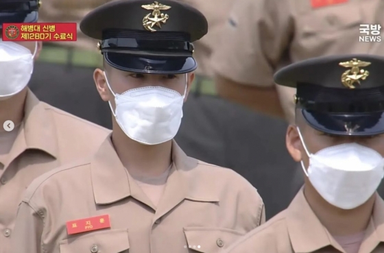 또 다른 사진에는 해병대 신병 제 1280기 수료식에 참석한 피오의 모습도 담겼다. 빨간색 이름표에 '표지훈'이라는 피오의 본명이 새겨져 있어 시선을 끈다. 한껏 늠름해진 분위기와 강렬해진 눈빛이 인상적이다.