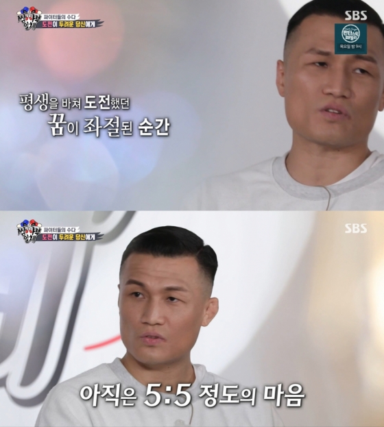 이에 추성훈 역시 양 팔의 근육이 끊어진 것을 보여주며 놀라움을 자아냈다. 하지만 추성훈은 "그래도 좋아하니까 하는 거고 할 수 있으니까 하는거고 아파도 할 수 있다"며 "인생을 보면 겨우 한 페이지다. 져도 한 페이지고 다쳐도 한 페이지고 길 게 보면 아무것도 아니니까 신경쓰지 말라"며 응원의 말을 전했다.