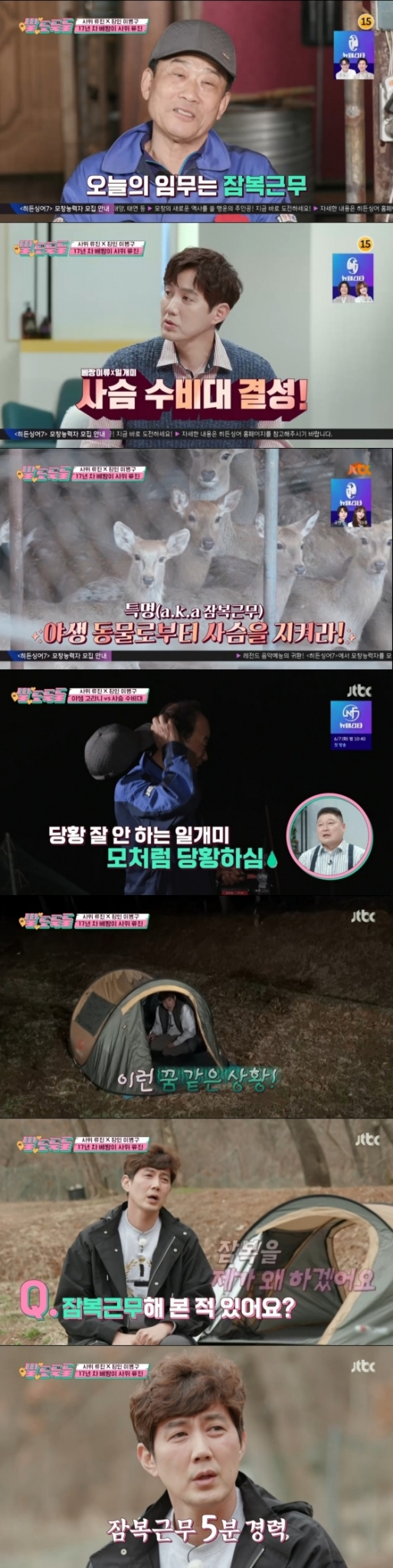 17일 방송된 JTBC 예능 프로그램 '딸도둑들'에서는 사슴을 지키기 위한 잠복근무에 돌입한 류진과 그의 장인어른의 모습이 담겼다.