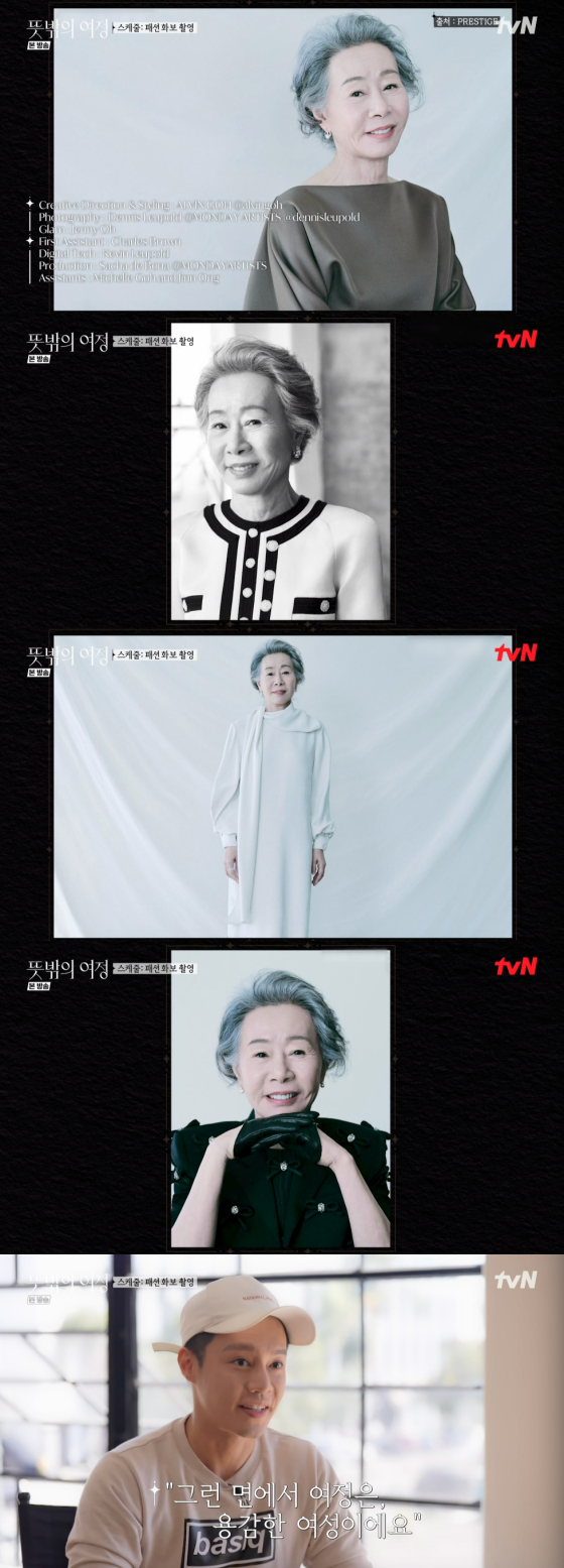 윤여정은 이후 패션 화보 촬영을 떠났다. 현장에는 크리에티브 디렉터 앨빈 고와 사진작가 겸 연출가 데니스 르폴드가 함께였다. 두 사람은 유행과 관계 없이 변함 없는 아름다움을 담고 싶다며 윤여정 맞춤 촬영을 진행했다. 앨빈은 이후 "여정은 가장 진실된 사람이다. 이 업계 특성상 진실된 모습을 드러내는 사람이 그렇게 많지 않은데 그런 면에서 여정은 용감한 여성이다"며 함박웃음을 지었다.