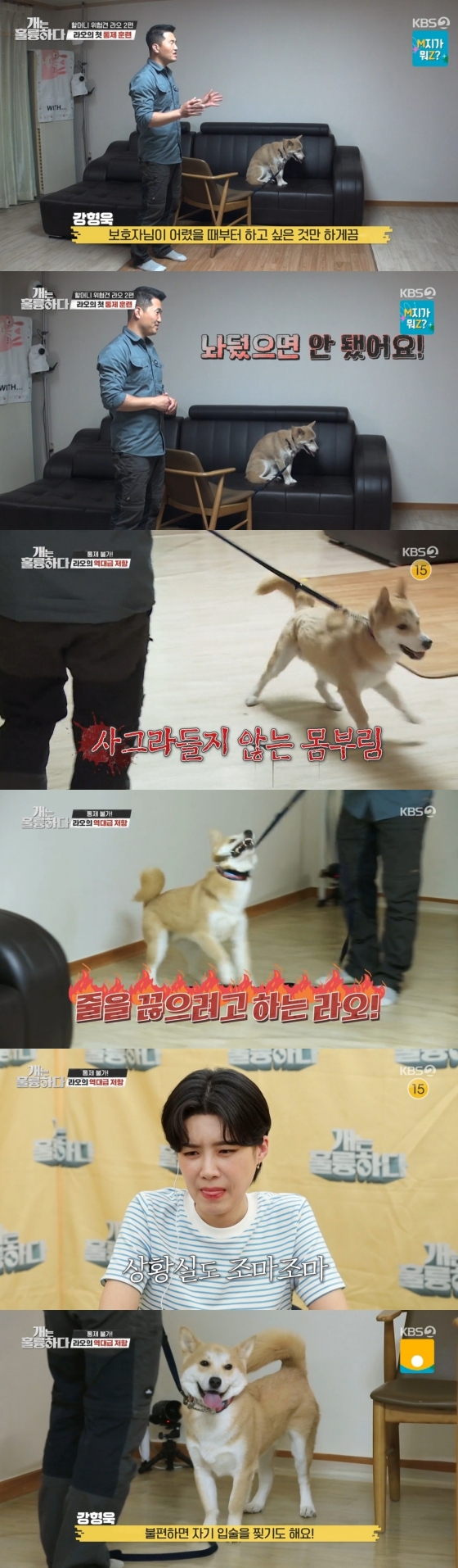 23일 오후 방송된 KBS 2TV 예능 프로그램 '개는 훌륭하다'에서는 무차별적으로 공격성을 보이는 고민견 라오의 훈련 모습이 담겼다.