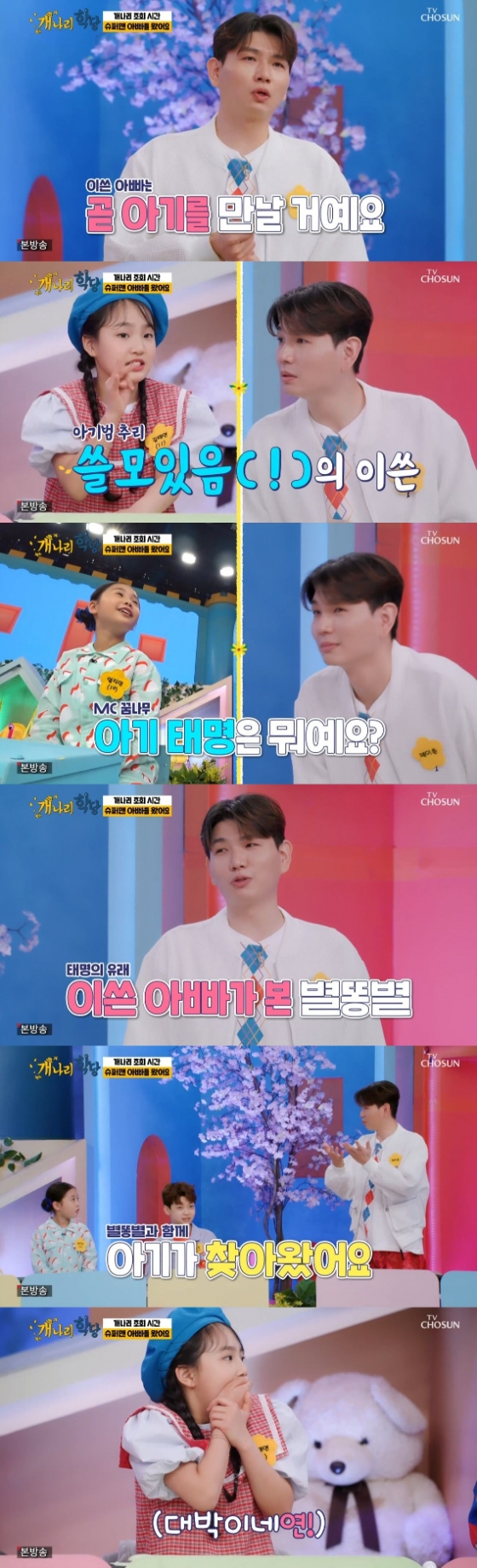 23일 방송된 TV조선 세대 공감 예능 '개나리학당'에서는 슈퍼맨 아빠 특집으로 홍경민, 김재원, 황제성, 제이쓴이 함께하는 5월 가정의 달 특집이 펼쳐졌다.