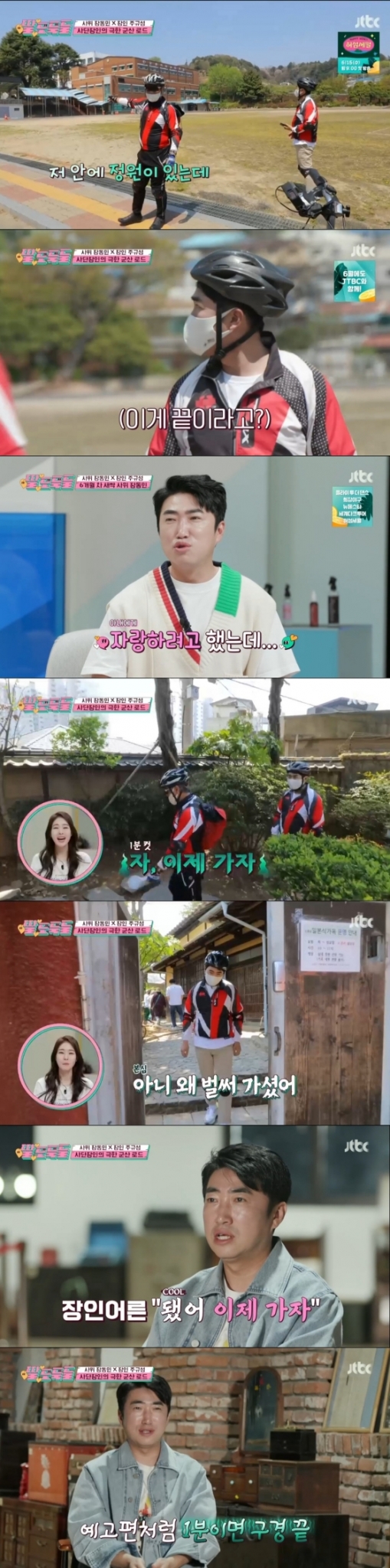 24일 오후 방송된 JTBC 예능프로그램 '딸도둑들'에서는 자전거를 타고 군산투어에 나서는 장동민과 그의 장인어른의 모습이 담겼다.