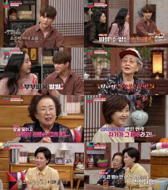 한편, 배우 함소원과 시어머니 마마가 함께 등장해 김영옥, 나문희, 박정수와 반갑게 인사를 나눴다. 함소원은 "아이를 잃고 남편이 임신 이야기도 꺼내지 못하게 한다"라며 안타까운 사연을 전했다. 둘째를 오래 기다렸던 함소원은 자연 임신에 성공했지만, 여러 스트레스를 받는 상황에 결국 유산했다. 할매들 앞으로 소환된 함소원의 남편 진화는 "유산한 후 아내의 몸이 완전히 회복되지 않았다. 아내를 보호해주고 싶다"라며 임신을 반대하는 속마음을 밝혔다.