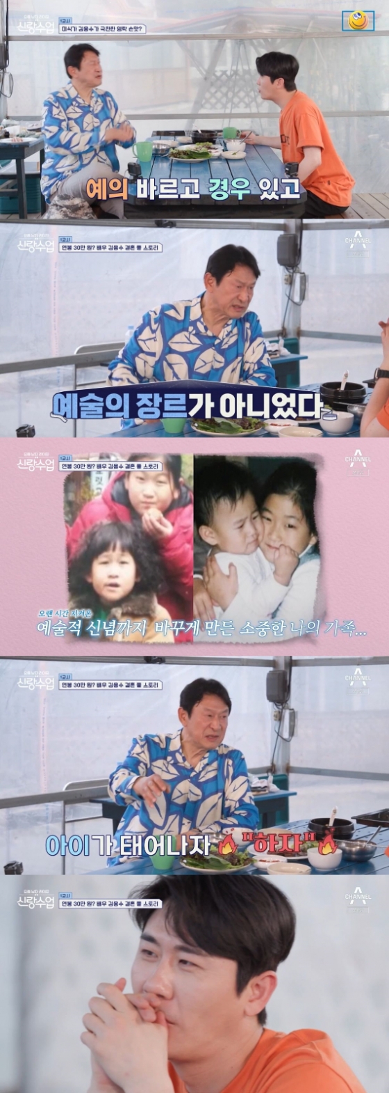 '결혼 후엔 어떻게 했냐'는 질문에 김응수는 "그 연봉으로 서울에 집을 못 얻는다"라며 "처가 생활을 했다"라고 설명했다. 김응수가 연극을 고집했던 이유는 드라마가 본인이 생각하는 예술의 장르가 아니었기 때문. 하지만 그는 42세 나이로 드라마를 시작하게 됐다. 김응수는 "처가 생활하는데 내 마음이 달라졌다"라며 "3년을 거절하던 드라마 출연을 큰아이가 태어나고 나서 바뀌었다"고 말하며 뭉클함을 전했다.