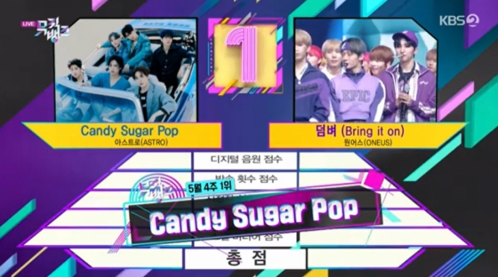 이날 1위 후보로는 아스트로의 '캔디 슈가 팝(Candy Sugar Pop)'과 원어스의 '덤벼'가 올랐다. 이날 아스트로는 방송 출연이 없었음에도 불구하고 1위에 이름을 올렸다.