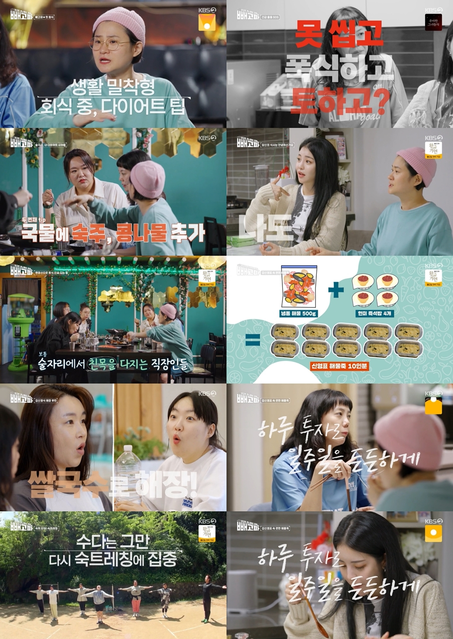 그런가 하면 김신영은 다이어터들도 회식을 즐길 수 있는 꿀팁도 공개했다. 어떤 안주를 어떻게 먹어야 하는지, 술을 적당히 마시면서도 건강을 유지할 수 있는 방법이 무엇인지 등을 소개했다. 또 술을 마신 후 붓기 제거를 위해 바나나 반 개를 먹는 것이 좋다는 것도 알려줬다. 다이어트를 하면서 술을 마실 수 있다는 사실에 '빼고파' 언니들의 흥도 폭발했다. 또 술을 마신 다음 날 해장을 위해 쌀국수 먹는 방법, 몸을 풀어주는 스트레칭 운동법 등도 소개됐다.