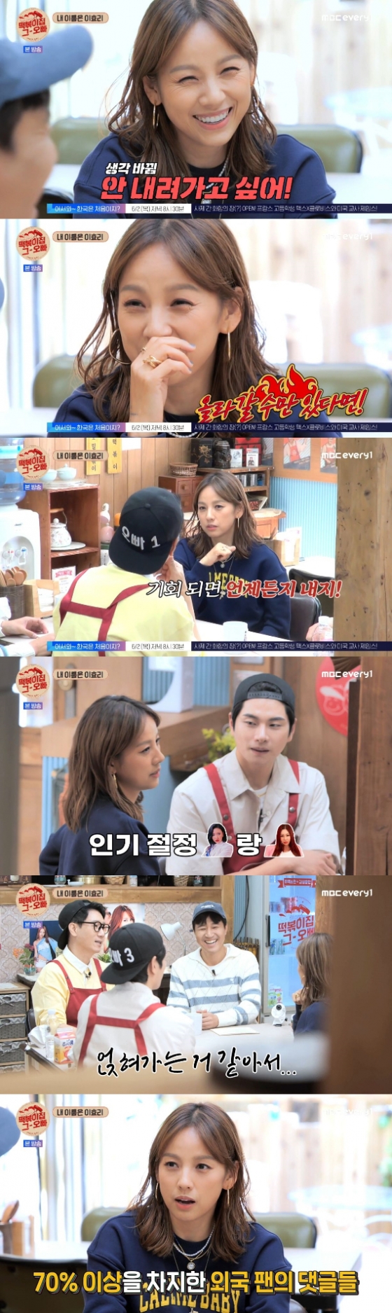 '떡볶이집 그 오빠'에서 이효리가 "톱스타에서 안 내려오고 싶다"고 밝혔다.