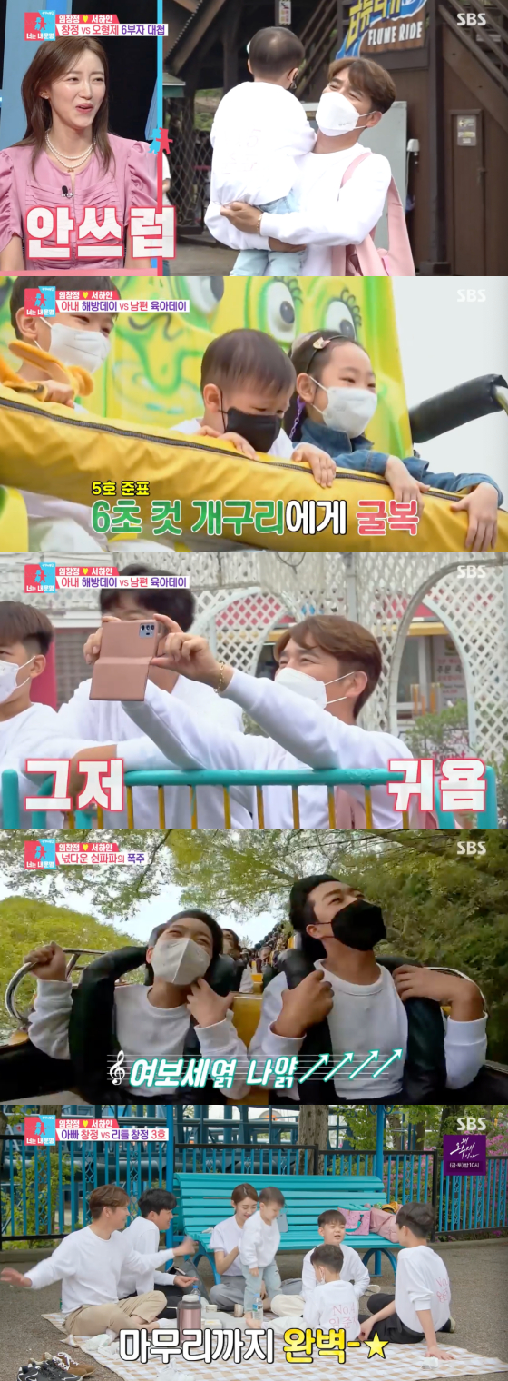 임창정은 이날 처음으로 아내 서하얀 없이 다섯 아들을 데리고 놀이공원에 갔다. 네 살짜리 다섯째 준표는 도착하자마자 머리띠를 사는 짧은 순간조차 잠시도 가만 있지 못하는 모습으로 웃음을 자아냈다. 임창정은 막내를 쫓아다니다 금세 "진짜 힘들다"며 진땀을 흘렸다. 서하얀은 "유모차를 끌고 갔어야 하는데"라며 안타까워했고, 이현이 역시 "그러니까. 한 명은 묶어놨어야 한다"고 공감해 웃음을 자아냈다.