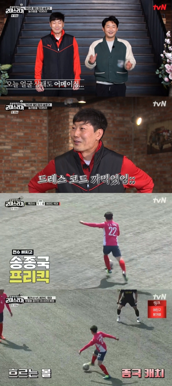 한편 '레전드 국대'는 특전사 팀에게 선취점을 내주며 1:0으로 뒤처지고 있는 상황. 과연 다음 방송에서 송종국이 선수들에게 첫 골의 영광을 안겨줄 수 있을지 시청자들의 기대가 모아지고 있다.