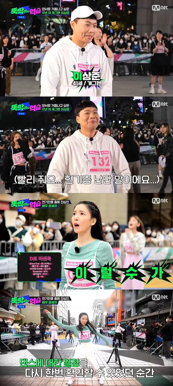 이날 길거리 오디션 참가자들이 8개의 조로 나뉘어 랜덤으로 선정된 K팝 안무에 맞춰 춤을 추는 형식으로 진행됐다. 강남, 홍대 등에서 진행된 오디션에서 회사원, 학생부터 크리에이터, 전 야구선수, 간호사, 모델, 교사, 셰프, IT회사 연구원 등 다양한 연령과 직업, 국적의 참가자들이 제각기 어설픈 춤실력을 뽐냈다.