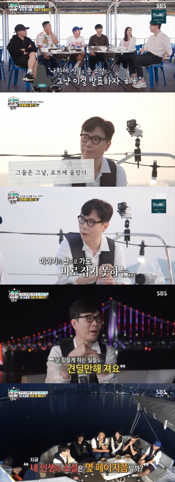 김영하 작가는 "처음에는 '너만을 위한 소설'이라고 줬는데 6개월 후에 결혼을 하고 살아가다 보니 청탁이 많이 들어오더라"며 "너무 많이 들어오니까 다 쓸 수가 없으니 아내가 '그냥 이걸 발표하자'고 하더라"고 전했다. 김영하 작가는 그 책이 바로 '오직 두 사람'이라며 "연애편지용으로 썼고 처음에는 전화로 들려줬다"며 로맨틱한 면모를 뽐냈다.