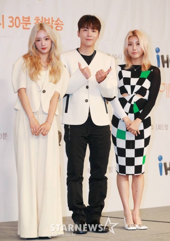 윤보미, 이홍기, 시미즈가 13일 오후 서울 마포구 서울가든호텔에서 진행된 IHQ 새 예능 '에덴' 제작발표회에 참석해 포즈를 취하고 있다. 설렘과 조건 사이에서 사랑을 찾는 일반인 남녀 8명의 연애 리얼리티 프로그램 '에덴'은 오는 14일 첫 방송된다. /2022.06.13 /사진=이동훈 기자 photoguy@