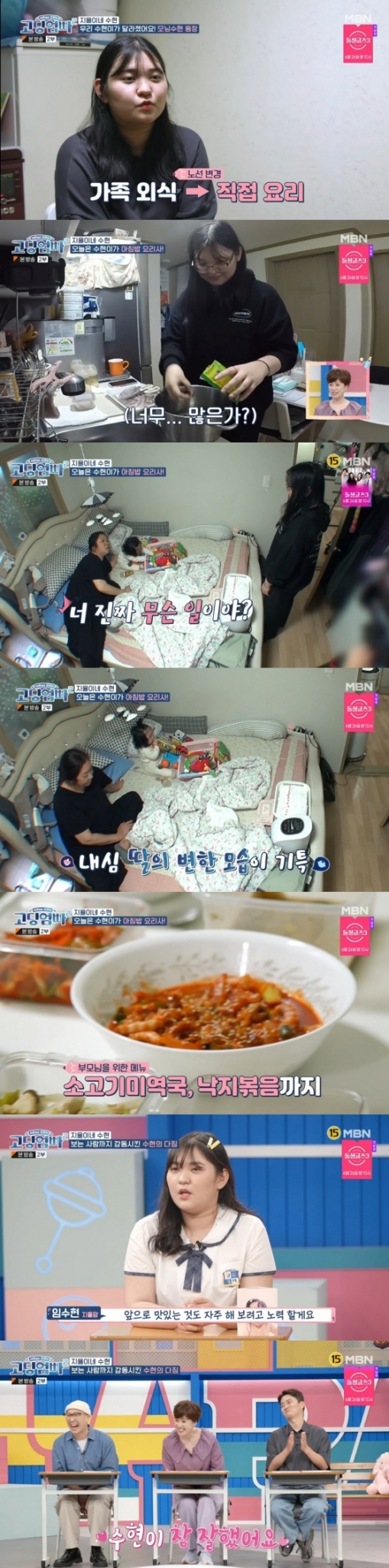 임수현 부모님은 딸이 직접 요리한 낚지볶음을 맛보며 행복해했고, VCR을 보던 박미선은 임수현에게 "앞으로도 자주 해드리세요. 저렇게 좋아하시는데"라며 흐뭇해했다. 방송 말미 임수현은 "앞으로 맛있는 것도 자주 해보려고 노력하겠다"며 기특한 변화를 보여 훈훈함을 안겼다.