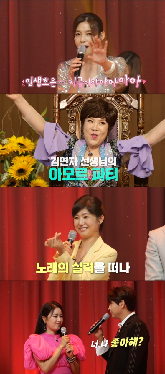 가장 먼저 무대 위로 오른 건 '찐이야'를 선곡한 김지원이었다. 이어 강수정이 '노란 샤쓰의 사나이'를 불러 기대 이상 최선의 퍼포먼스를 선보였지만, 아쉽게도 결과는 최저점이었다. 김연자는 "얼굴도 예쁘고 말씀도 잘하시는데 (신이) 노래 실력만 안 주셨지 싶다"라고 평가해 폭소를 안겼다. 이어진 '어머나' 무대에서는 김수민이 막내의 패기를 내세운 상큼한 보컬로 박수 갈채를 이끌었다.