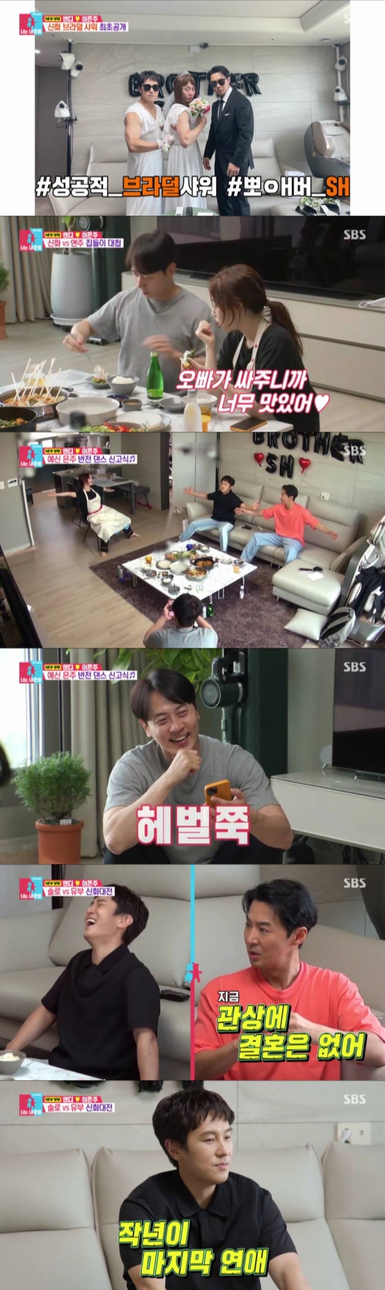 이날 방송에서 앤디와 이은주는 서울 신혼집에 신화 멤버들을 초대했다. 앤디의 신혼집을 방문한 전진과 김동완은 등장부터 남다른 '텐션'으로 분위기를 끌어올렸다.