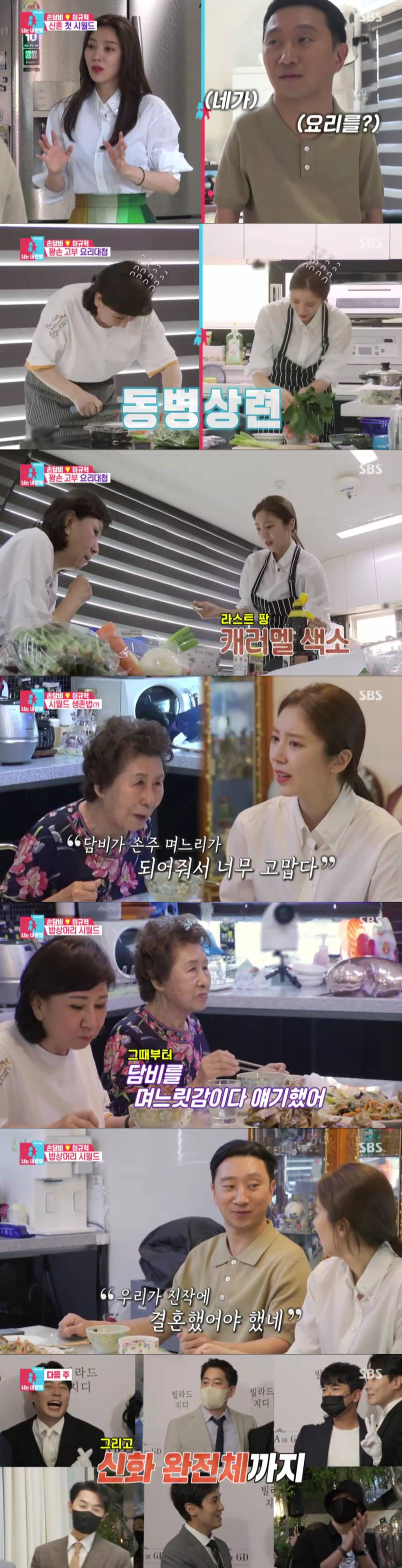 손담비는 이규혁을 키워준 시외할머니의 90세 생신상 차리기에 도전했다. '요알못' 손담비는 아래층에 살고 있는 시어머니에게 도움을 요청했지만, "엄마가 요리하는 걸 본 적이 없다"는 이규혁의 말처럼 어머니는 손담비보다도 서툰 모습으로 웃음을 안겼다.