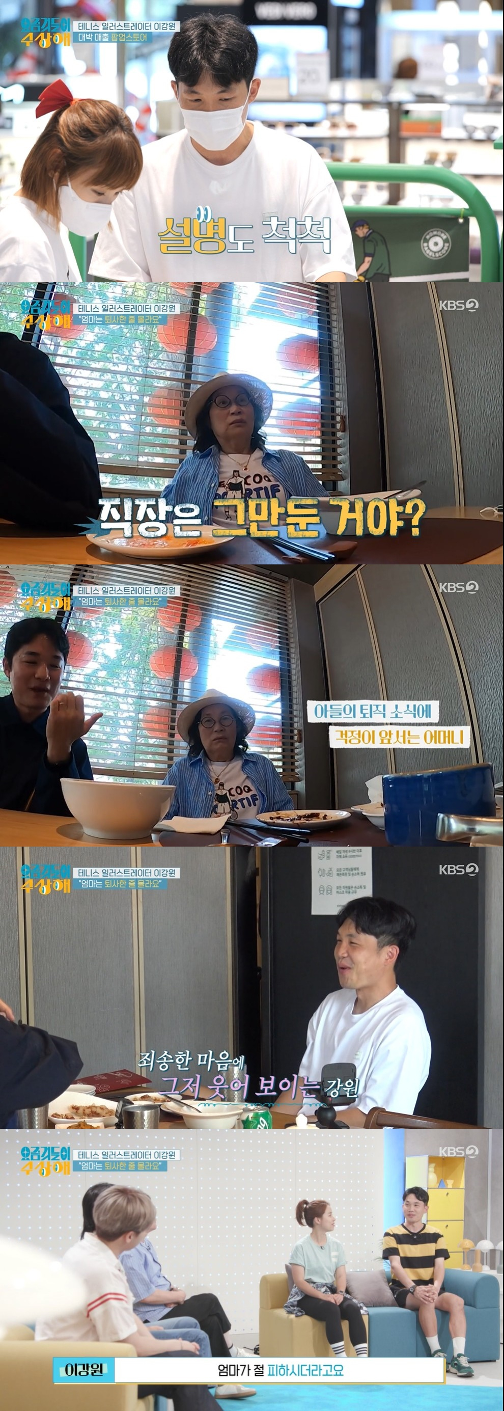 그는 과거 법학과를 졸업 후 국내 대기업 S전자 사원이었던 그는 "직장 생활 내내 사춘기였다"며 자아에 대한 갈등을 털어 놓았다. 백화점 팝업 매장을 오픈한 '요상이 이강원'은 어머니를 초대했다.