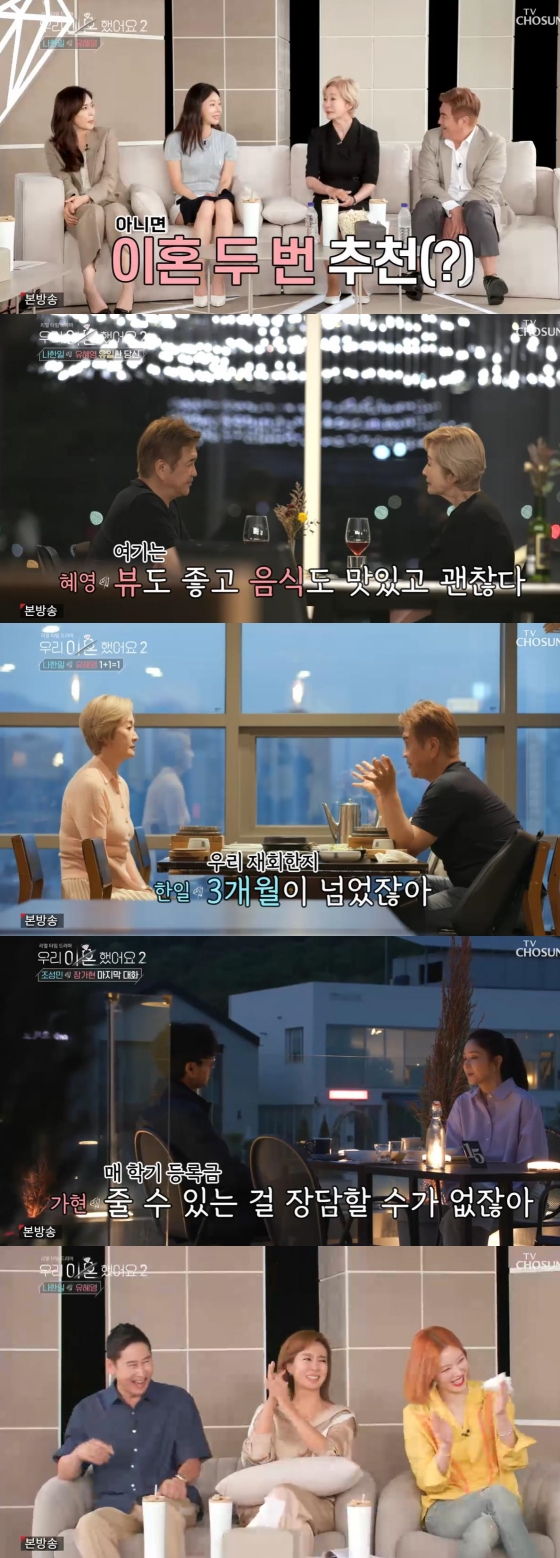 지난 7월 1일 방송된 TV CHOSUN '우리 이혼했어요2'(이하 우이혼2) 최종회는 닐슨코리아 기준 전국 시청률 7.1%, 분당 최고 시청률은 8.9%를 기록, 12주 연속 종편 및 케이블 동시간대 시청률 1위를 차지하는 기염을 토했다. 이날 방송에서는 지난 3개월간 때론 뜨거운 눈물로, 때론 열렬한 응원으로 안방극장의 몰입도를 높였던 MC 신동엽, 김원희, 김새롬과 솔직하고 과감한 이혼 담론으로 열화와 같은 지지를 얻은 나한일, 유혜영 커플, 지연수, 장가현이 스튜디오에서 만나 대장정을 마무리하는 뜻깊은 소회를 털어놨다.