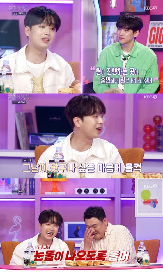 이찬원은 "DKZ 멤버 재찬씨가 항상 저한테 하던 말이 있다"며 "형이 진행하는 프로그램에 나가서 방송국에서 일로 한 번 만나보고 싶다"고 DKZ가 말했던 일화를 전했다. 이어 이찬원은 "계속 그 얘기를 했는데 이 무대를 보는데 갑자기 정말 확 울컥했다"며 DKZ 멤버들의 성장에 벅찬 감정을 전했고 이를 듣던 MC 김준현은 "울어 울어"라며 이찬원을 부추겨 웃음을 모았다.