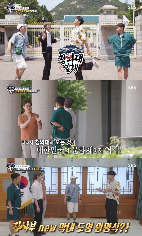 3일 방송된 SBS 예능 프로그램 '집사부일체'에서는 청와대를 사부 삼아 청와대 투어가 그려졌다. 예능 프로그램 최초로 청와대를 방문한 것이며, 역사학자 심용환이 멤버들의 청와대 투어에 도움을 줬다.