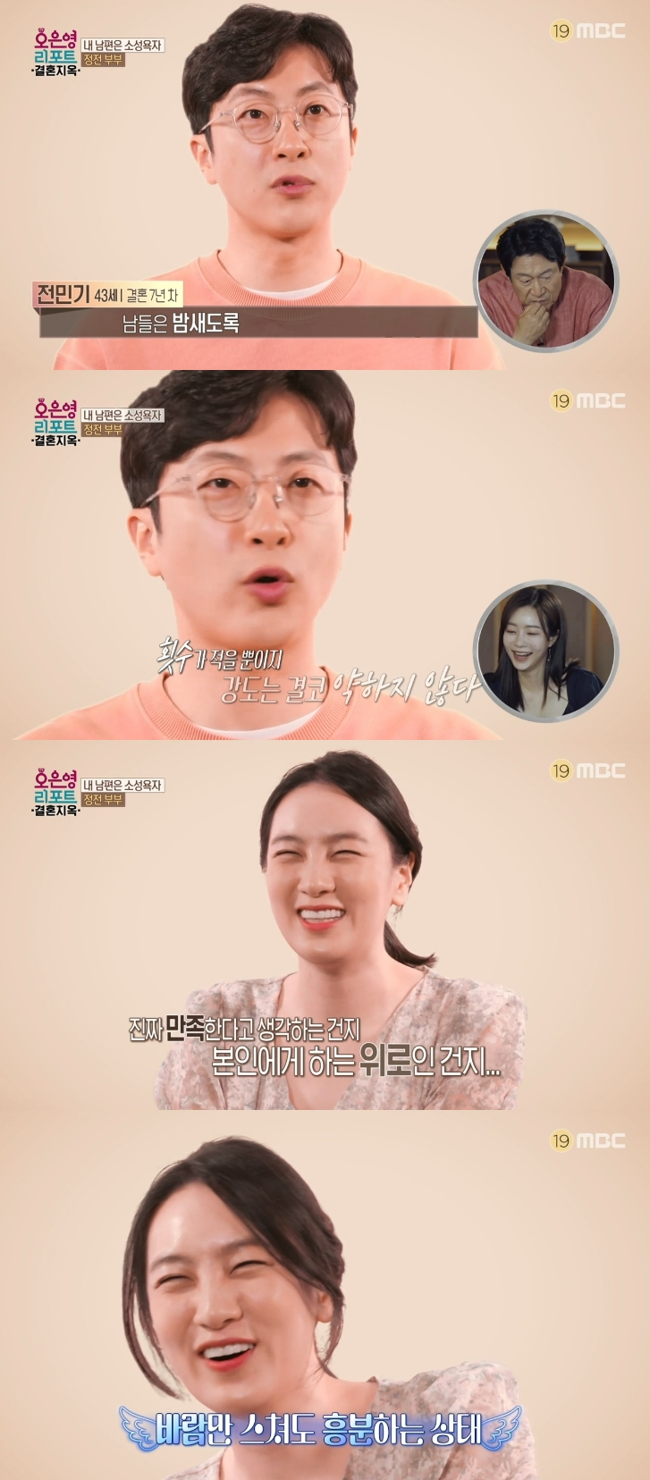 전민기는 "주변을 봐도 아이를 키우다보면 잠자리가 줄더라. 그 부분에대해서 크게 생각하지 않았는데 아내는 크게 생각하더라. 그 부분이 잘 안맞아서 갈등이 생기더라"라고 말했다.