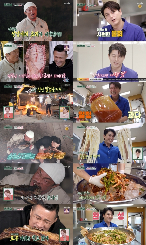 8일 방송된 KBS 2TV '신상출시 편스토랑'(이하 '편스토랑')에서는 '바캉스 메뉴'를 주제로 한 44번째 대결이 시작됐다. 무더위를 한 방에 날려줄 메뉴 탄생이 기대되는 가운데 편셰프로 나선 두 요섹남 추성훈과 류수영이 화끈한 매력을 발산하며 시청자를 사로잡았다.