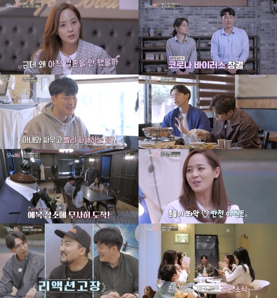 최근 녹화에서 유세윤과 유진, 봉태규, 유병재, 일명 '깨볶단'은 4년간의 짝사랑에서 연인으로 발전해 어느덧 결혼을 앞둔 성민도, 김세희 커플의 러브스토리를 소개했다. 이들 커플은 경제적 어려움으로 결혼식을 미룰 수밖에 없었다고 해 안타까움을 유발한다.