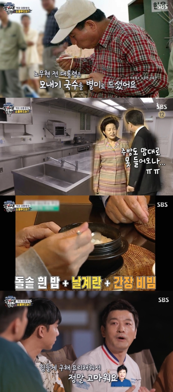 이어 그는 "이명박 대통령같은 경우는 돌솥에 흰 밥으로 한 밥에 계란을 깨서 참기름에 간장 넣고 한 밥을 최고의 보양식이라고 하셨다"고 전했따. 천상현 셰프는 "박근혜 대통령은 편식을 안 하셨다"며 "울릉도에 나물이 좋은 게 많다. 그런 나물을 공수해 드렸더니 힘들게 구해줘서 고맙다고 피드백을 해주셨다. 그럴 때 보람을 느꼈다"고 전했다.