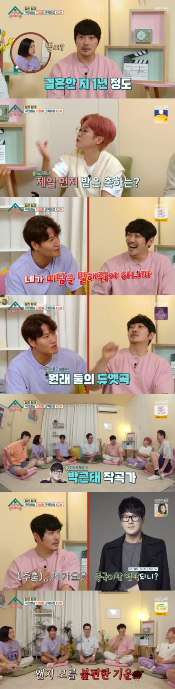 한편 송은이는 KCM에게 "KCM의 '듣고 싶을까' 노래가 김종국의 노래였다는 말이 있던데"라며 질문했다. 이에 김종국은 "원래는 듀엣곡이었다"라고 답해 이목을 끌었다. KCM은 과거 박근태 작곡가에게 전화를 받아 '종국이와 너와의 곡이다'라는 말을 전해 들었다고 알렸다. 이어 박근태 작곡가는 KCM에게 '종국이랑 연락되니?'라고 물었고 KCM은 '형은 안되세요?'라며 서로 김종국에게 연락을 하기 미뤘던 상황을 전했다. 한편 KCM은 "저도 종국이 형한테 전화를 할 때 편안한 마음이 들지는 않다. 알 수 없게 불편하다"라고 말해 웃음을 자아냈다.