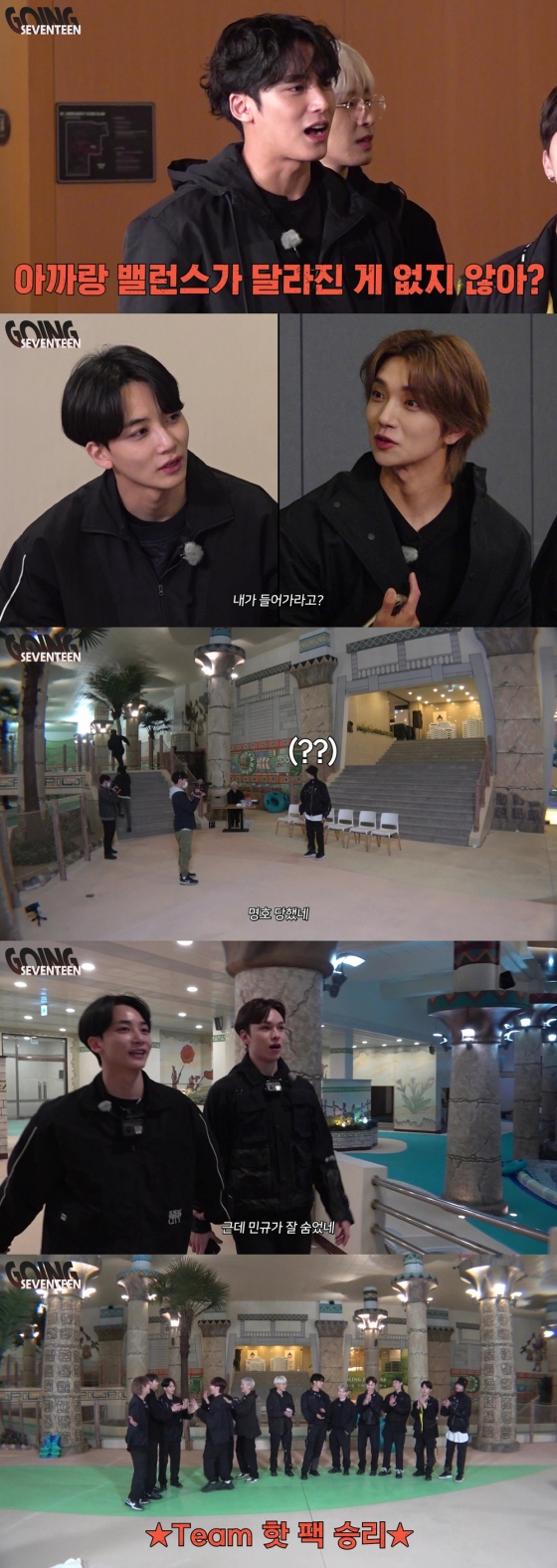 세븐틴은 라운드를 거듭할수록 번뜩이는 창의력을 발휘하며 속임수용 아이템을 곳곳에 배치해 상대팀을 혼란스럽게 했다. 또한, 멤버들은 예상치 못한 공간에 몸을 숨겼고, 이를 본 승관은 "어떻게 이런 데 숨어"라며 감탄해 웃음을 자아냈다.