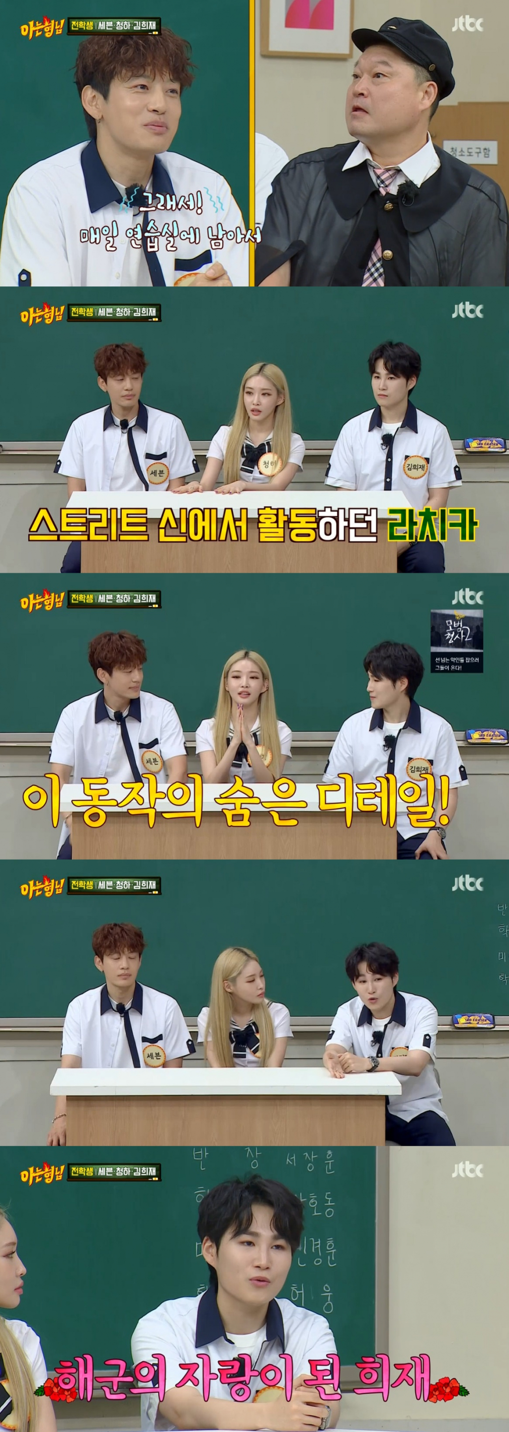 16일 방송된 JTBC 예능프로그램 '아는 형님'에서는 세븐, 청하, 김희재가 게스트로 출연했다.