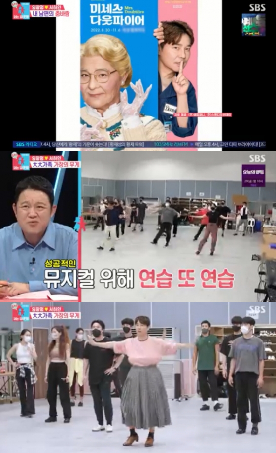 이날 서하얀은 임창정의 뮤지컬 연습을 위해 함께 연습장을 찾았다. 주연을 맡은 임창정은 어려운 탭댄스를 열심히 연습하고 완벽하게 해내 만능 엔터테이너 다운 모습을 보였다.