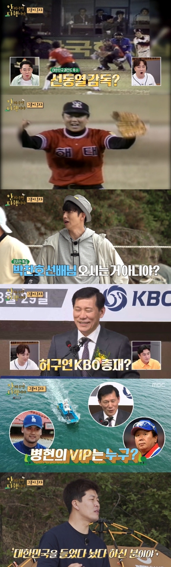 김병현은 "저한테는 거의 아버지 같은, 스승님 같은, 공 하나로 대한민국을 들었다 놨다 하신 분이야"라며 설명했다. 홍성흔은 "누군데 힌트 줘, 혹시 선동열?"이라 말했고, 이대형은 "박찬호 선배님 아니야?"라며 기대했다. 이어 홍성흔은 "KBO 총재 오시는 거 아니야?"라며 호들갑을 떨었다.
