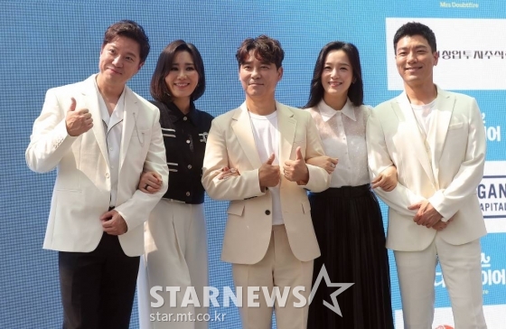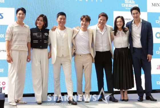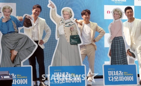 뮤지컬 '미세스 다웃파이어'(이하 '다웃파이어')는 19일 오후 서울 중구 앰배서더 서울 풀만 호텔 남산룸에서 제작발표회를 진행했다. 이날 김미혜 프로듀서, 박민선 프로듀서, 김동연 연출, 김문정 음악감독, 다니엘/다웃파이어(임창정, 정성화, 양준모), 미란다(신영숙, 박혜나), 스튜어트(김다현, 김산호)가 참석했다.