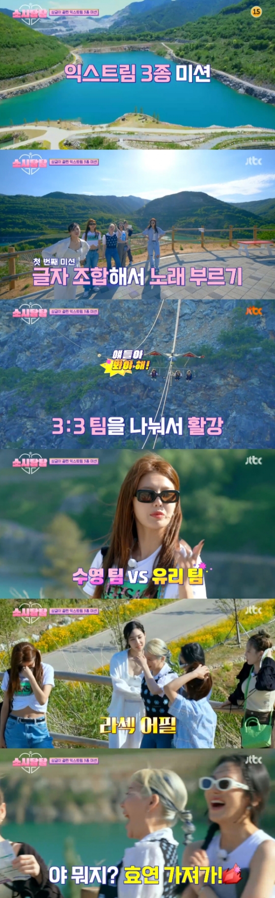 19일 방송된 JTBC 예능프로그램 '소시탐탐'에서는 강원도 마지막 여행지에 도착했다. 제작진은 익스트림 3종 미션을 성공하면 상금 100원을 주겠다고 폭탄선언을 해 소녀시대의 관심을 모았다.
