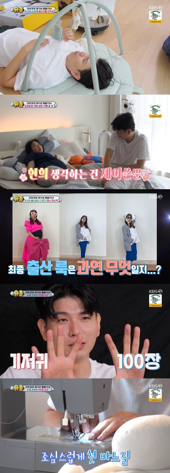 22일 방송된 KBS 2TV 예능 프로그램 '슈퍼맨이 돌아왔다'에서는 9개월째 임신 중인 홍현희와 남편 제이쓴의 모습이 담겼다.