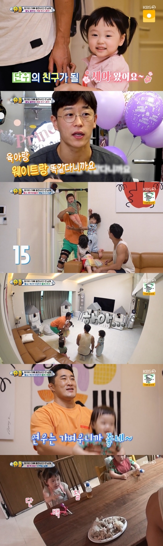 김동현은 "제가 인정하는 몇 안 되는 헬짱 아빠이다"라며 김동현의 해병대 후배이자 유튜버 지기를 소개했다. 지기의 딸 세아는 처음 만난 단우에게 밝게 인사하며 적극적으로 친해졌다.