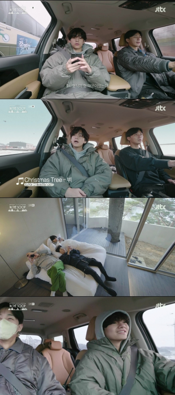 차로 이동하면서 노래를 들었고, 뷔는 'Christmas Tree'를 선곡해 달콤한 목소리로 직접 불러 팬들을 감동케 했다.