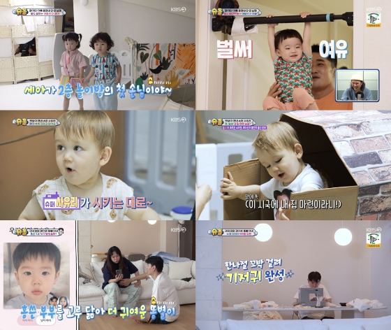 지난 22일 방송된 KBS 2TV '슈퍼맨이 돌아왔다'(이하 '슈돌') 440는 '뉴 슈퍼맨의 탄생~' 편으로 꾸며졌다. 단연남매와 김동현은 헬스 육아 창시자 유튜버 '지기'와 그의 딸 '세아'를 만나 헬스 육아를 함께 했고, 젠과 사유리는 이사간 새 집에서 새로운 추억을 쌓았다. 홍현희, 제이쓴 부부는 곧 태어날 똥별이를 위한 출산 준비를 했다.