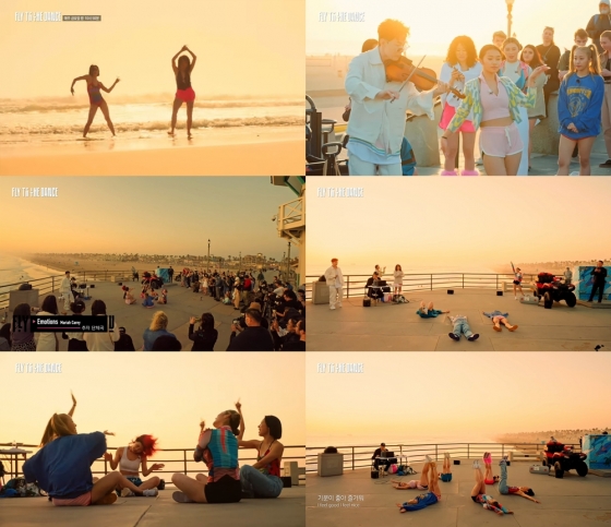 우연히 만난 현지 버스커 소녀의 노래에 영감을 받은 헨리는 'All Of Me' 곡에 맞춰 즉석에서 바이올린을 켰고, 추자 멤버들은 두 사람의 연주에 프리스타일 댄스를 펼쳤다. 여기에 헌팅턴 비치 피어에 비친 노을이 더해지며 환상적인 분위기를 완성했다. 리아킴은 'Dance Monkey'에 압도적인 무브로 보는 사람들에게 최고의 몰입감을 선사했고, 'Imagine' 음악과 어우러진 하리무의 우아한 안무 동작이 잔잔하게 감성을 자극하며 깊은 여운을 남겼다.