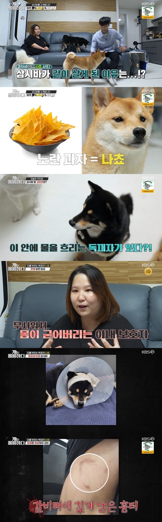 25일 오후 방송된 KBS 2TV 예능 프로그램 '개는 훌륭하다'에서는 보호자가 공격력이 너무 강한 시바견 '나쵸' 때문에 공포에 떠는 모습이 공개됐다.
