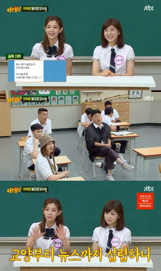 30일 방송된 JTBC 예능프로그램 '아는 형님'에서는 황수경, 강수정이 게스트로 출연했다.