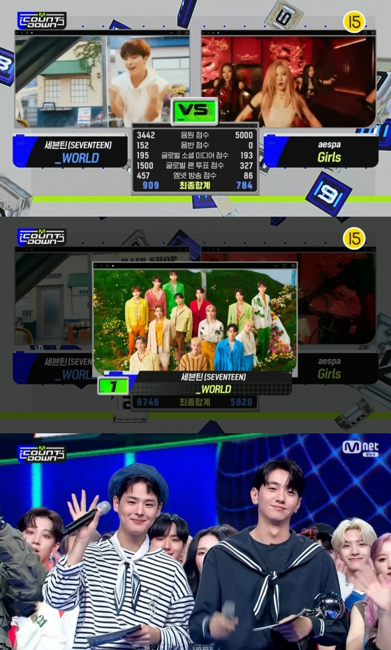 4일 방송된 Mnet '엠카운트다운'(이하 '엠카')에서는 세븐틴 '_WORLD'와 에스파가 'Girls'가 8월 첫째 주 1위 후보에 올랐다.