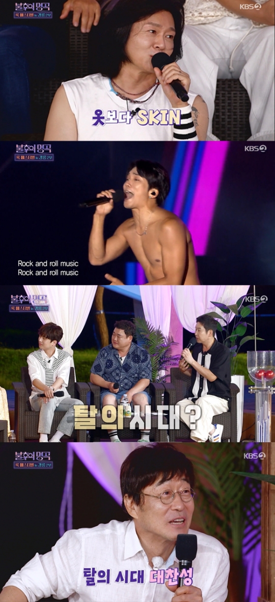 윤도현 역시도 "록은 옷보다는 맨살이네요"라고 대답하며 상의 탈의 퍼포먼스에 강한 긍정을 하는 모습을 보였다.