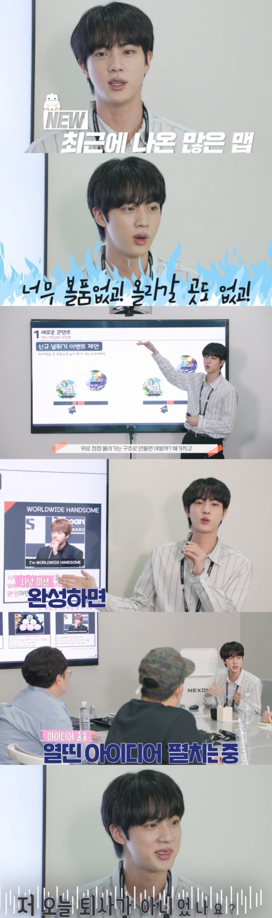 이날 진은 기획 회의에 참여해 자신이 준비한 다양한 아이디어를 발표해 눈길을 끌었다.
