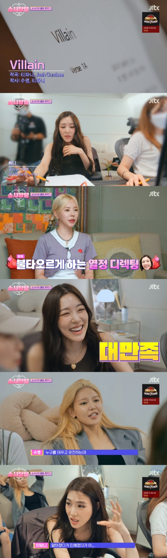 23일 오후 방송된 JTBC 예능프로그램 '소시탐탐'에서는 소녀시대가 티파니의 자작곡 'Villain'을 녹음하는 장면이 담겼다.