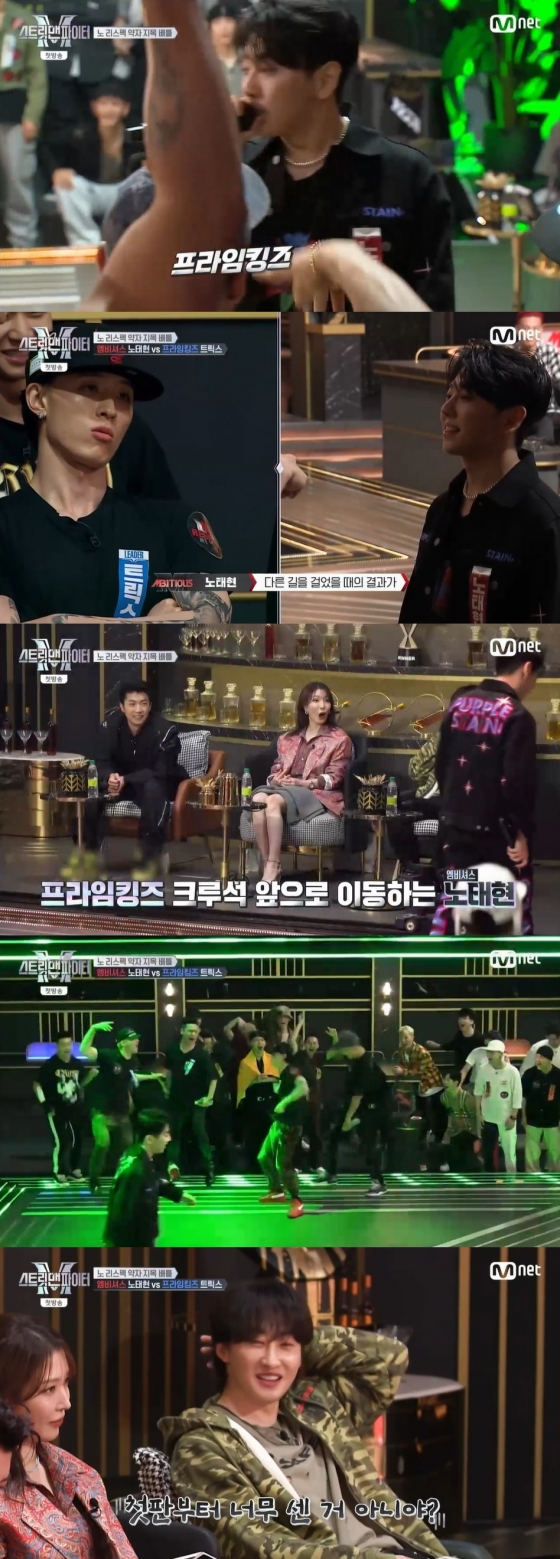 23일 오후 첫 방송된 Mnet 프로그램 '스트릿 맨 파이터'(이하 '스맨파')에서는 노태현이 트릭스를 도발하며 댄스 배틀을 하는 장면이 공개됐다.